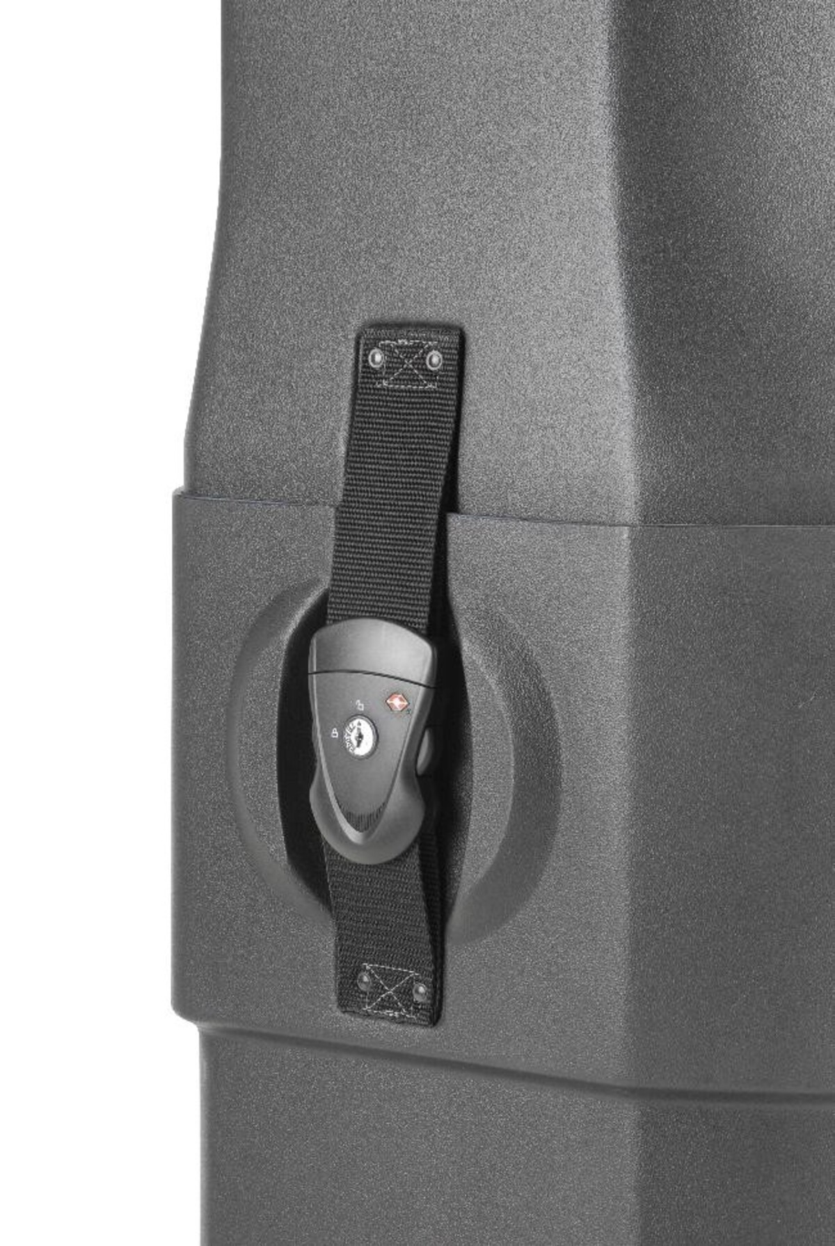 - Slide-in cap design. TSA Locking Buckle Strap.
