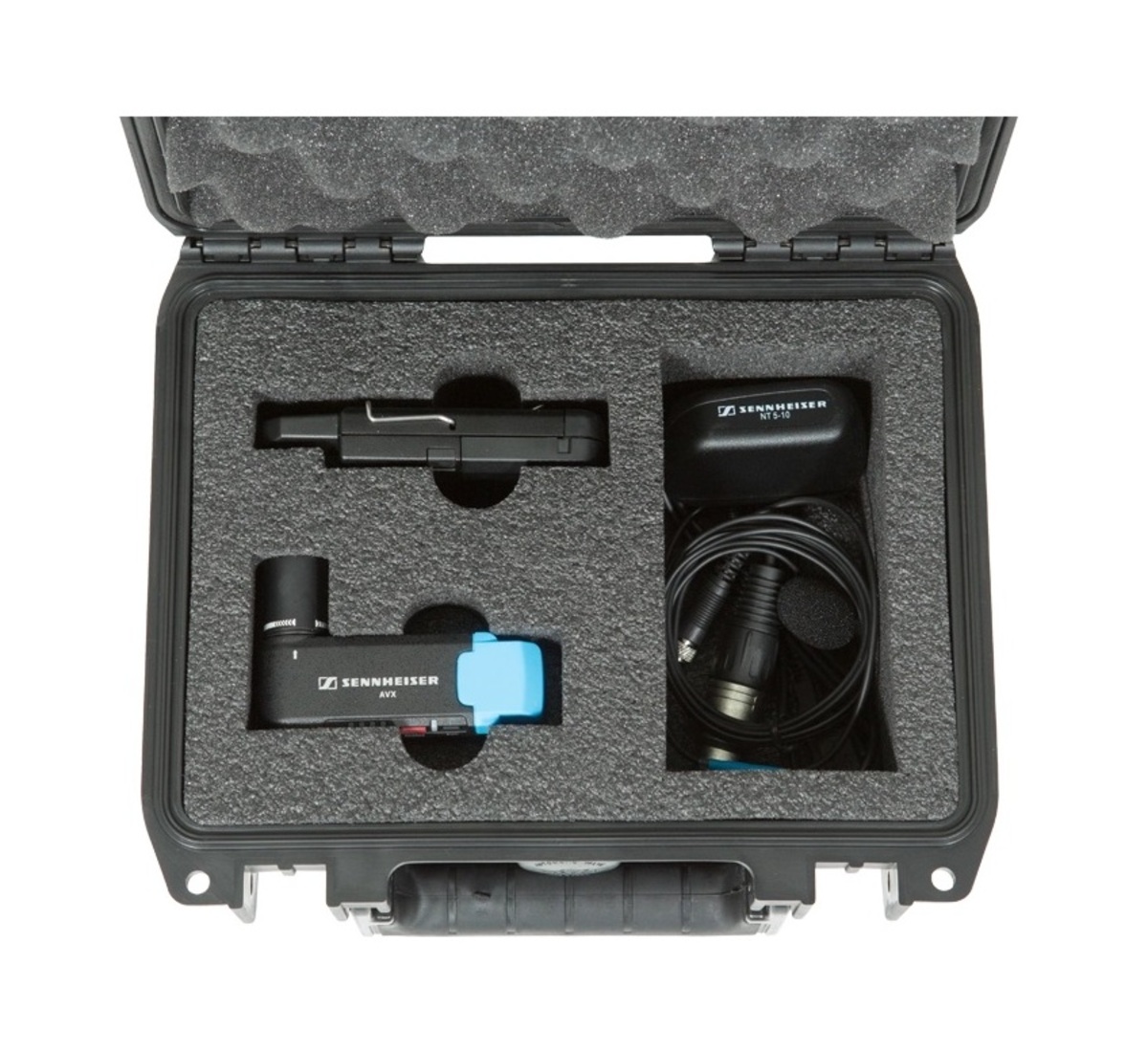The iSeries 3i0806-3-AVX case is designed to accommodate the Sennheiser AVX Wireless Audio System. The interior features custom-cut high quality PE foam that will hold the Sennheiser AVX transmitter, receiver, lav mic, and other accessories. There are also two pockets for additional AVX batteries.