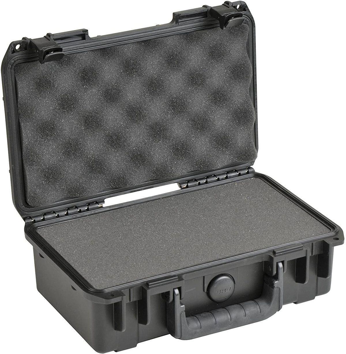 SKB iSeries Injection Molded Mil-Standard Waterproof Cases are molded of ultra high-strength polypropylene copolymer resin, featuring a gasketed, water and dust tight, submersible design (MIL-C-4150J) that is resistant to corrosion and impact damage. Features a molded-in hinge, patented trigger release latch system, comfortable, snap-down rubber over-molded cushion grip handle, automatic ambient pressure equalization valve (MIL-STD-648C), resistance to UV, solvents, corrosion, fungus and impact damage (MIL-STD-810F).