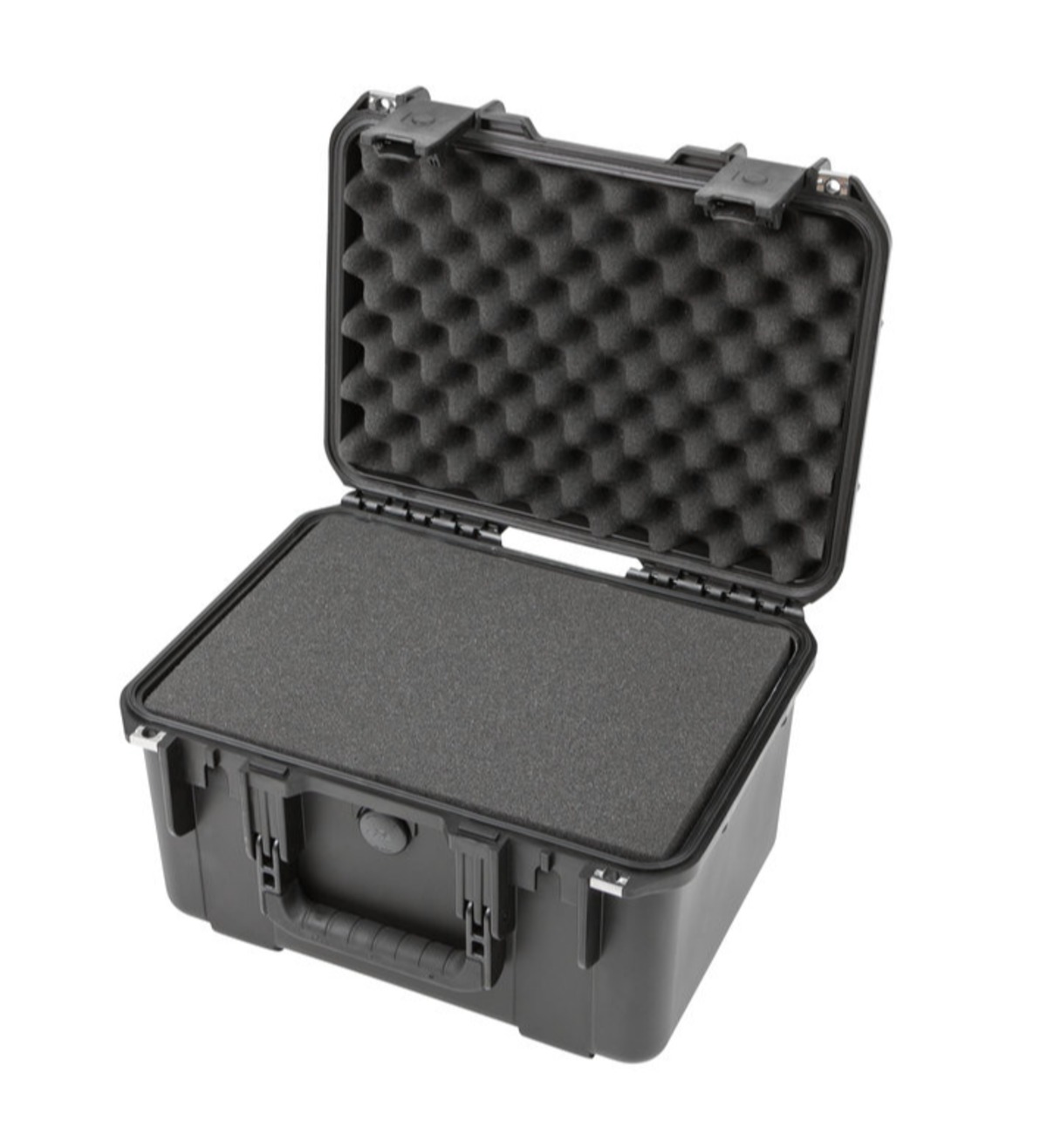 SKB iSeries Injection Molded Mil-Standard Waterproof Cases are molded of ultra high-strength polypropylene copolymer resin, and feature a gasket-sealed, water and dust tight, submersible design (MIL-C-4150J / IP67). Other standard features include a molded-in hinge, patented trigger release latch system, comfortable, snap-down rubber over-molded cushion grip handle, automatic ambient pressure equalization valve (MIL-STD-648C), and resistance to UV, solvents, corrosion, fungus and impact damage (MIL-STD-810F).