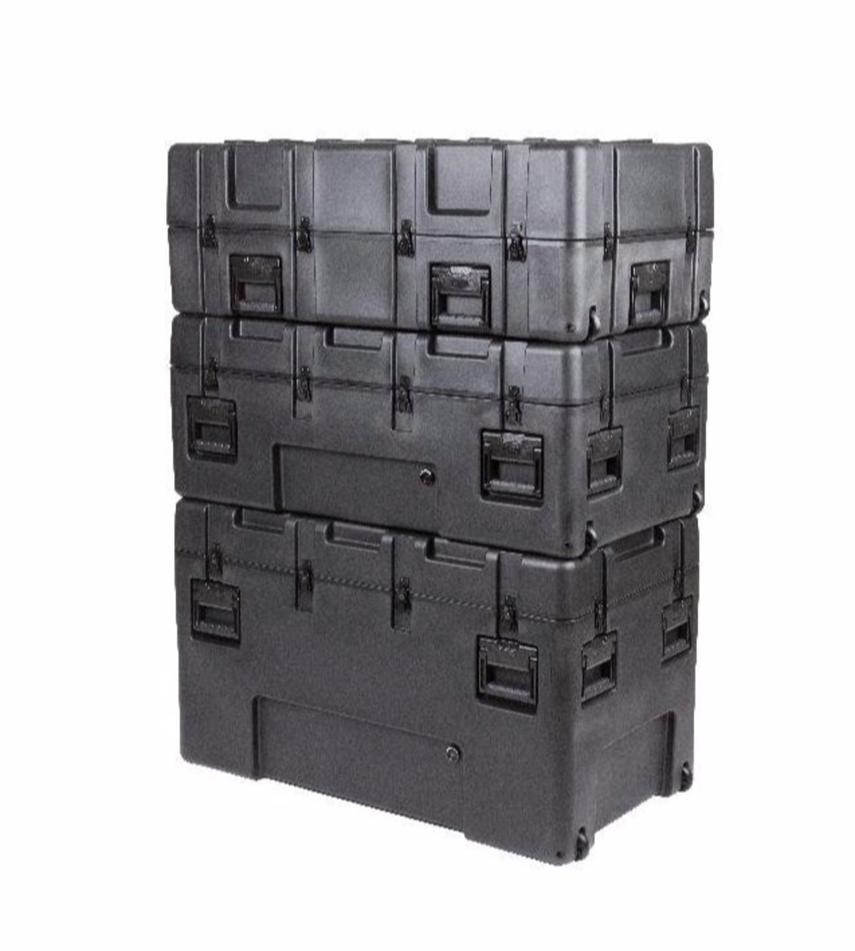 These Mil-Standard cases were designed to meet the most demanding military specifications. They are roto-molded for strength and durability, airtight and water proof with solid stainless steel latches and hinges that will withstand the most demanding shipping conditions.The 3R Mil-Std. Cases are molded of (LLDPE) polyethylene impact resistant / UV stabilized material and meet or exceed MIL-STD 810 and MIL-C-4150J specifications.The shipping cases are all available with an empty interior while some models are available with: cubed foam, layered foam, padded dividers, and a pull handle with wheels.Wheel options vary by case.
