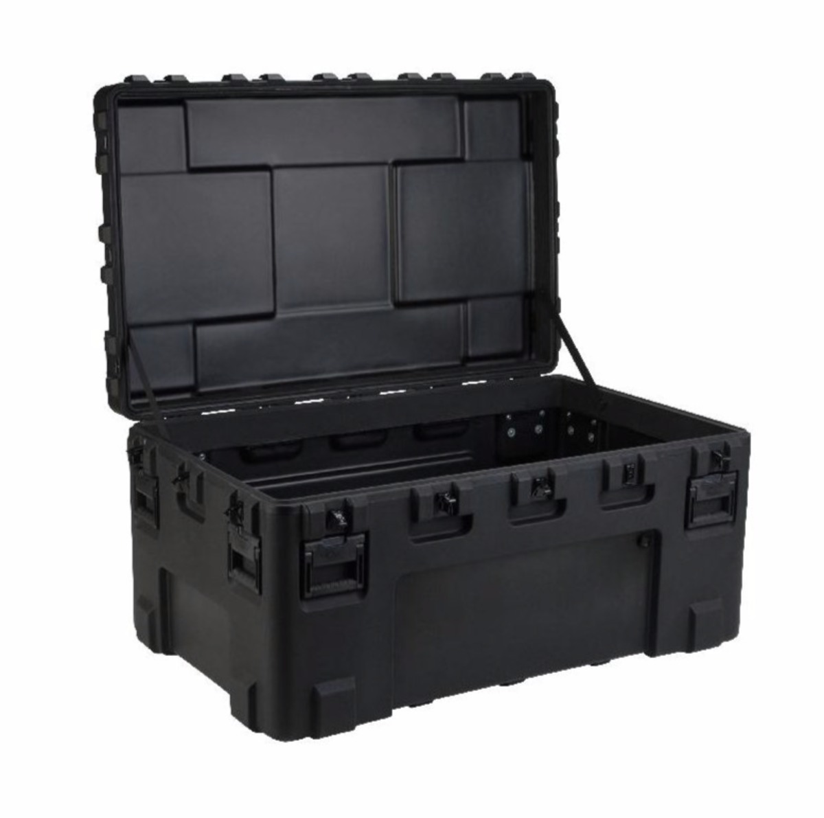 These Mil-Standard cases were designed to meet the most demanding military specifications. They are roto-molded for strength and durability, airtight and water proof with solid stainless steel latches and hinges that will withstand the most demanding shipping conditions.The 3R Mil-Std. Cases are molded of (LLDPE) polyethylene impact resistant / UV stabilized material and meet or exceed MIL-STD 810 and MIL-C-4150J specifications.The shipping cases are all available with an empty interior while some models are available with: cubed foam, layered foam, padded dividers, and a pull handle with wheels. Most models without a built-in pull handle or tow handle accommodate a field installable caster kit which is sold separately.