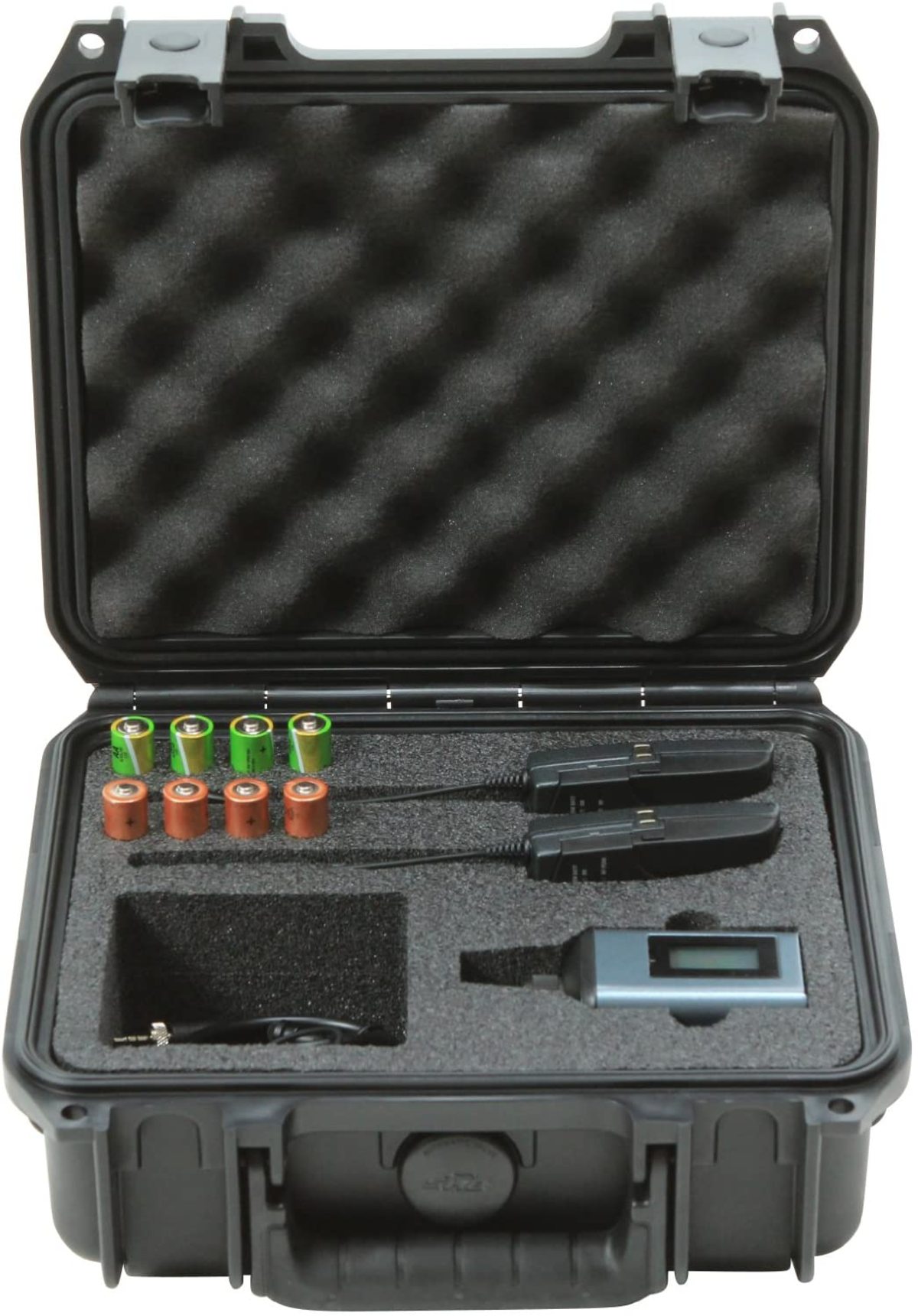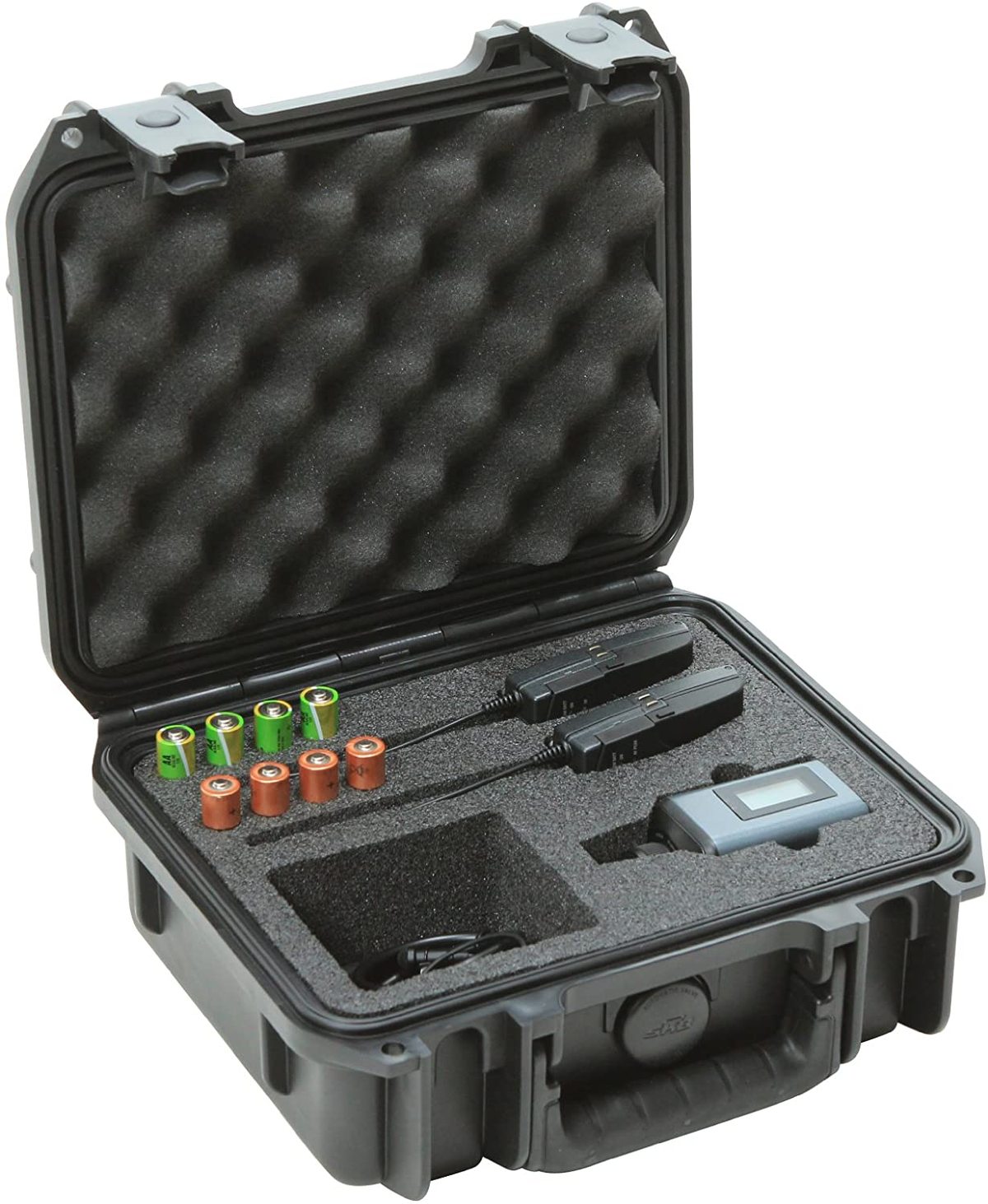 The 3i0907-4-SWK Custom interior Sennheiser EW Wireless System Mic case is a very compact case and is part of the SKB iSeries Waterproof cases range. The interior features a custom cut polyethylene (PE) foam interior that will accommodate a wireless plug-on transmitter, wireless body pack transmitter, wireless body pack receiver with an extra spot for a lavaliere microphone plus additional accessories with an overall interior measurement of 9" x 7" x 4", compact yet durable to house your delicate wireless system.